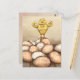 Celebre a Páscoa com um toque de charme divertido. Este cartão de felicitações apresenta uma ilustração original de um pequeno pintinho confiante em pé orgulhosamente sobre uma pilha de ovos lindamente decorados. Com sua pose alegre e tons pastel quentes, a obra de arte captura o espírito alegre da primavera e dos novos começos.