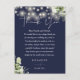 Um elegante cartão de agradecimento de recepção de casamento com luzes de corda florais azuis marinho. Personalizado com sua mensagem especial de agradecimento em tipografia estilosa. Um agradecimento único para seus convidados. Concebido por Thisisnotme©