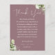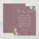 Um cartão de agradecimento de recepção de casamento com folhagem floral roxa elegante. Personalizado com sua mensagem especial de agradecimento em tipografia estilosa. Um agradecimento especial para seus convidados. Criado por Thisisnotme©