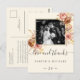 Cartão de agradecimento de casamento com foto, apresenta rosas em aquarela em marrom chocolate e rosa rubor. Tema de cor champanhe, elementos decorativos falsos dourados, por favor, note que os detalhes em relevo dourado neste design são uma imitação, não folha de ouro.