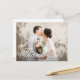 Um design de sobreposição de foto trendy com escrita caligráfica branca e uma bela foto de casamento.