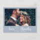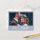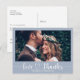 Este cartão de agradecimento de casamento elegante tem uma foto na frente com uma sobreposição de texto de Amor e Agradecimento e os nomes do casal. O verso tem sua própria mensagem pessoal, endereço de retorno e espaço para o endereço de envio.