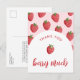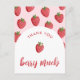 Celebre a alegria dos novos começos com nossos cartões-postais "Thank You Berry Much" (Muito Obrigado) para Chá de Bebê da Doce Moranguinha, apresentando um delicioso padrão de morango em tons de vermelho suave combinado com um arco e uma tipografia de letra cursiva moderna. Estes cartões-postais de chá de bebê de morango são a escolha ideal para expressar sua gratidão com estilo e combinam com o tema de chá de bebê doce e frutado.
