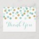 Use nossos cartões de agradecimento com bolinhas de glitter em hortelã e dourado para agradecer seus convidados do chá de bebê ou festa. Se preferir escrever uma nota manuscrita no verso, pode facilmente excluir o texto nesses campos antes de adicionar os cartões ao seu carrinho. Este cartão de agradecimento em hortelã e dourado combina perfeitamente com nossos convites com bolinhas de glitter e a coleção de chá de bebê, vendidos separadamente.