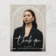 Expresse gratidão com estilo com o cartão postal de agradecimento de formatura com foto de arco de roteiro moderno. Com uma fonte de roteiro elegante e um layout de foto de arco único, este cartão é a maneira perfeita de agradecer familiares e amigos por seu apoio. Um belo souvenir para comemorar este marco especial.
