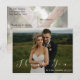 Lindo cartão de agradecimento de foto de casamento com sobreposição de escrita "obrigado" branca moderna e elegante. Apresenta fotos da frente e do verso.