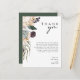 Nós projetamos este cartão de agradecimento de recepção Floral Branco para completar o seu casamento rústico tropical escuro. Com sua folhagem em aquarela boêmia e suas flores modernas de inverno boho, incluindo protea, dália e lótus seco, o design certamente destacará seu tema verde e branco minimalista e sombrio. Altere o texto e adicione uma foto para torná-lo seu. Além disso, certifique-se de examinar o restante da coleção para encontrar itens coordenados que unirão todo o seu casamento! https://www.zazzle.com/collections/white_floral_collection-119896729923706651