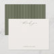 HARMONY | Cartão de agradecimento de tipografia verde oliva. Características, parte de trás com padrão de listras verdes oliva e sage com fundo bege suave na frente.