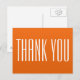 Um vibrante esquema de cores laranja decora este cartão postal de agradecimento. Este cartão postal de agradecimento é ótimo para uma empresa, escritório, salão, casamento, formatura, aniversário, etc....O design é de arte original.