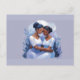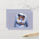 Duas mulheres negras estão se abraçando neste cartão. A frente e o verso são azul claro.