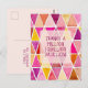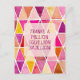 Formas de diamante pintadas à mão em tons de rosa, pêssego e dourado formam o fundo deste cartão de agradecimento. Uma mensagem especial é encontrada no verso do cartão - tudo facilmente alterado.