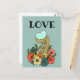 Diga que ama alguém de uma forma única. Cartão postal branco com um tentáculo de polvo desenhado à mão segurando uma bolha em forma de coração. Ah, amor.
