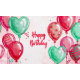 Cartão de Aniversário com Balões Coloridos de Diferentes Formas e Tamanhos.