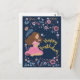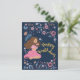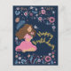Postal Cartão de aniversário azul feliz com senhora flora