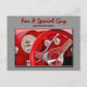 O painel interior e o volante do carro vermelho clássico ajudam uma cara a celebrar seu aniversário especial. As cores masculinas do vermelho, prata e preto dão a este cartão-postal um aspecto muito sofisticado. Na frente do cartão está escrito "Para uma Cara especial no seu aniversário". A parte de trás tem a Escritura Verso 1 Corinthians 2:9. Todo texto é personalizável. Imagem também disponível em um cartão postal de vazio e um cartão de vazio e modelo personalizáveis.