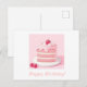 Cartão postal de bolo de aniversário cor-de-rosa. Estilo feminino e delicado.