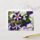 Postal Cartão de Aniversário com Flores Roxas Brancas e A