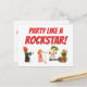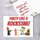 Cartão de aniversário de comida divertida joga um cartão postal engraçado. Este cartão de aniversário divertido e peculiar apresenta uma hilária banda vegetal que certamente fará alguém sorrir. Com um pepino punk no teclado, uma batata-branca encaracolada nos tambores, um limão legal a balançar o violão, e uma batata rico de cabelos laranja nos vocais, este cartão apresenta a banda mais louca, mais fria e mais divertida de todos os tempos! Perfeito para amantes da música e para aqueles com senso de humor, esta carta adiciona um nível extra de diversão a qualquer celebração de aniversário. Os personagens brincalhões combinados com a ousada mensagem "Party Like a Rockstar" fazem disto uma escolha única para qualquer estrela-do-cavalo na sua vida. Aproveite!