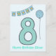 NovoParqueLane - Cartão de aniversário para um menino de oito anos, apresentando um grande número 8 verde e com um azul com bolinhas brancas e uma grinalda colorida em verde e azul-turquesa, e um doce desejo de "Feliz Aniversário!".