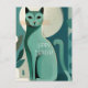 Celebre o aniversário de um amante de gatos com estilo com este cartão postal de gato retrô meados do século! O design apresenta uma elegante impressão verde de um gato em estilo abstrato meados do século e texto em negrito e personalizável que diz "Feliz Aniversário!" Este cartão postal é perfeito para enviar um cumprimento de aniversário divertido e único para o seu amigo ou familiar que ama gatos.