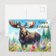 Postal Cartão de Aniversário do Alce e Flores Silvestres