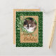Um gatinho calico bonitinho com olhos verdes de jade aninhados em jade é um postal de feliz aniversário único e alegre. Fotografia original e design do Anura Design Studio.