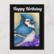 Envie votos de feliz aniversário com um belo cartão postal de gaio azul criado a partir da minha pintura original em aquarela. Cores ricas de azul profundo e preto realçam o estilo realista de arte de vida selvagem. Observadores de pássaros e fãs do ar livre admirarão os detalhes realistas neste design clássico de pássaro.