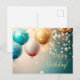 Cartão de saudação festivo com balões ouros e azuis e confete