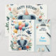 Postal Cartão de Aniversário Feliz de Elefante Bonito - B