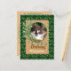 Um gatinho calico bonitinho com olhos verdes de jade aninhados em jade é um postal de feliz aniversário único e alegre. O nome na placa frontal e o dentro de texto podem ser personalizados no modelo fornecido. Você também pode gostar das muitas designs de gatos calicos em cartas e presentes na minha loja. Fotografia original e design do Anura Design Studio.