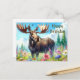 Postal Cartão de Aniversário para Alce e Flores Silvestre
