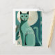 Celebre o aniversário de um amante de gatos com estilo com este cartão postal retro de gato de meados do século! O design apresenta uma impressão verde elegante de um gato em estilo abstrato de meados do século e texto em negrito personalizável que diz "Feliz Aniversário!". Este cartão postal é perfeito para enviar uma saudação de aniversário divertida e única para o seu amigo ou familiar que ama gatos.