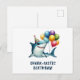 Faça um grande sucesso com este Cartão de Aniversário Shark-tastic! Com um tubarão alegre usando um chapéu de festa e segurando balões coloridos, este cartão é perfeito para celebrar um aniversário de uma maneira divertida e única. Ideal para crianças e qualquer pessoa que ama o oceano, este cartão vai trazer um grande sorriso ao rosto da pessoa que está fazendo aniversário. Deseje-lhes um "Aniversário Shark-tastic" com este design encantador e vibrante!