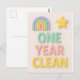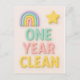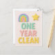 Um ano de aniversário de aniversário de sobriedade limpa O Pastel colorido com bolhas escrevendo arco-íris e estrelas. Escreva sua própria mensagem no verso