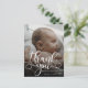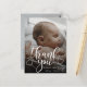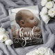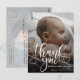 Cartão de Anúncio de Nascimento de Bebê com Foto Moderna. Design com roteiro de agradecimento, foto única do bebê, estatísticas de nascimento, data e nome na frente. Personalize com outra foto e sua mensagem de agradecimento no verso.