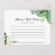 Este cartão de conselho de casamento tropical é perfeito para um casamento simples. A design apresenta palma verde de cor d'água pintada à mão e folhas de bananeira bem organizadas em belos buquês. Estas cartas são perfeitas para um casamento, chá de panela, chá de fraldas, festa de formatura e muito mais. Personalize as cartas com os nomes da noiva e do noivo, dos futuros pais ou do formando.