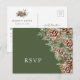 Cartão postal de RSVP Boho. Simplifique o planejamento do seu casamento com nossos cartões-postais de RSVP, parte do "Conjunto de Casamento Elegante de Folhagem e Pinhas de Inverno". Com folhagem pintada à mão em aquarela e ramos de pinheiro dispostos como uma moldura deslumbrante, esses cartões-postais oferecem uma escolha entre um fundo verde rico ou branco crocante. Cada peça é meticulosamente projetada para garantir uma estética perfeita e cativante, facilitando a resposta dos seus convidados e adicionando um toque de elegância invernal à papelaria do seu casamento.