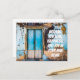 Este cartão de casa nova colorido é perfeito para dar parabéns por uma nova casa. O design urbano minimalista e colorido apresenta uma parede azul, bege e marrom e uma porta azul, além de um texto sobreposto em caligrafia branca "Desejando amor, felicidade e alegria em sua nova casa". Personalize o texto na frente se desejar.
