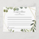 Este cartão de conselho de casamento dos consejos e deseos tropicais é perfeito para um casamento espanhol moderno. A design apresenta lindas folhas verdes pintadas à mão, enfeitando um quadro geométrico dourado. Estas cartas são perfeitas para um casamento, chá de panela, chá de fraldas, festa de formatura e muito mais. Personalize as cartas com os nomes da noiva e do noivo, dos futuros pais ou do formando.
