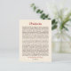 As palavras atemporais de conforto, encorajamento e sabedoria do Desiderata de Max Ehrmann tornam um cartão postal que é significativo e atraente. O texto é impresso em marrom escuro e vermelho profundo contra um fundo pálido semelhante ao pergaminho. Envie para um amigo ou exiba como uma obra de arte miniatura.