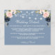 Elegante Aquarela Azul Dusty Pink Floral, Luzes de Corda Detalhes do Casamento Inserir Cartão