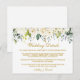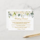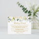 Watercolor Ivory White Floral Greenery Detalhes do Casamento Inserir Cartão inclui rosas brancas de marfim e verde botânico. Script Dourado