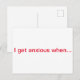 Cartão de encorajamento dizendo "Eu fico ansioso quando" para as crianças expressarem suas emoções e sentimentos quando elas não podem falar sobre isso.
