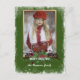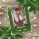 Cartão de férias único, clássico, de moda, bonito e decorativo, com um bonito padrão de coroa floral vermelho escuro e verde em forma de casaco. Com espaço para personalizar ou personalizar com uma foto e nomes (ou nome da família) de sua escolha. E um poema de saudação de estação personalizável na parte de trás do cartão.
