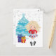 Este adorável cartão de feriado do Irish Dance apresenta uma linda dançarina irlandesa loira em um vestido azul e vermelho a dançar numa terra maravilhosa de inverno cheia de neve, uma árvore de Natal e presentes. Alguns gráficos da MUJKA.