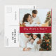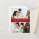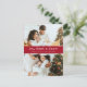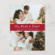 Traga o ano novo com este único Cartão de Férias Vermelho Que Ano. Este cartão elegante inclui 'Oh, Que Ano' em uma fonte de máquina de escrever vintage elegante, 2 fotos da família e texto no verso para personalizar. Texto branco em fundo vermelho.