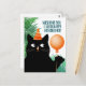 Cartão festa de aniversário com gato preto, plantas e balão. ★ Por favor, verifique a coleção correspondente para COORDENAR ITENS.¨¨¨.