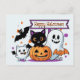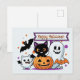 Um gato preto, morcegos, fantasmas e uma abóbora estão aqui para desejar um feliz Halloween!