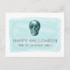 Cartão de Halloween moderno e descolado com Crânio de Aquarela com um fundo azul-turquesa claro e um crânio assustador. Este cartão único e moderno pode ser facilmente personalizado com sua própria saudação assustadora de Halloween. Encontre mais opções de personalização clicando em Personalizar.