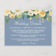 Cartão de Inserção de Detalhes de Casamento em Azul Empoeirado com Floral Amarelo em Aquarela